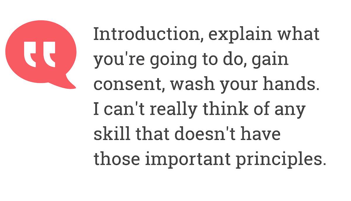 I have to explain to them what I'm doing and I also need to explain to the patient what skill I'm performing.