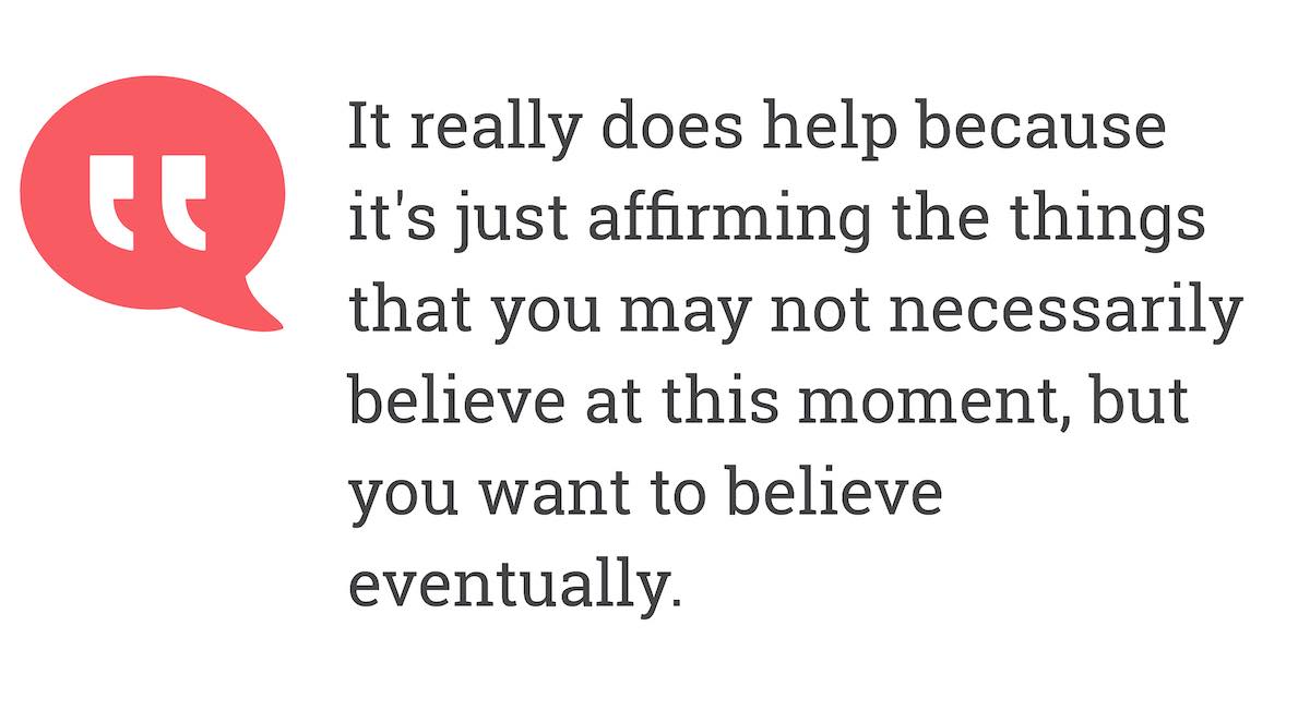 It really does help because it's just affirming the things that you may not necessarily believe at this moment, but you want to believe eventually.