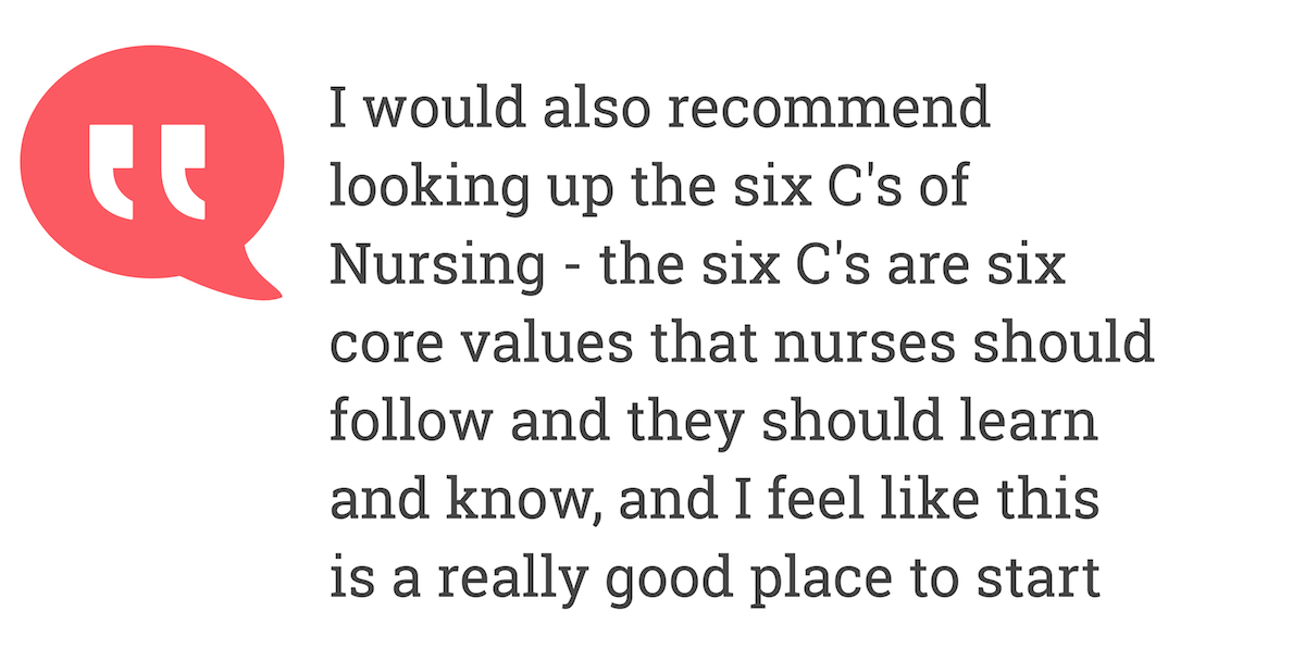 And I would also recommend looking up the six C's of Nursing - the six C's are six core values that nurses should follow and they should learn and know, and I feel like this is a really good place to start before you go into first year because in first show you more than likely you will maybe have an essay on it - I know I did but I guess everyone won't.