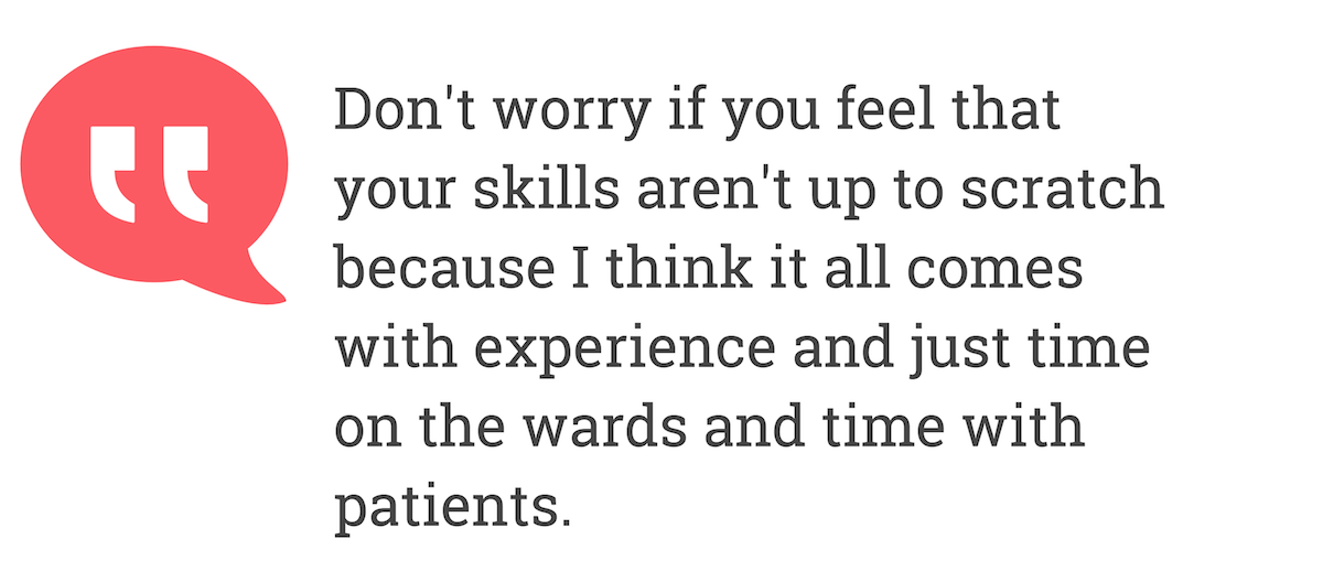 So I would say definitely don't worry if you feel that your skills aren't up to scratch because I think it all comes with experience and just time on the wards and time with patients.