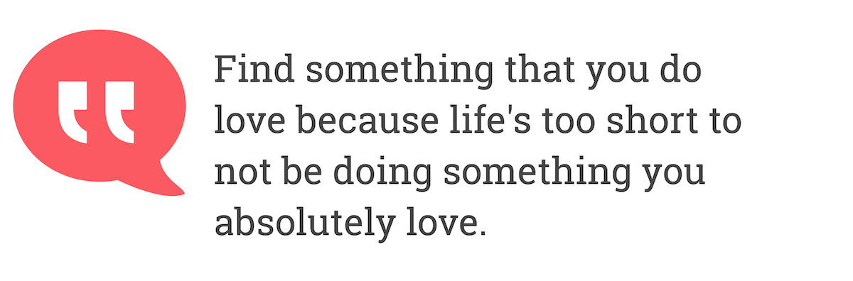 Find something that you do love because life's too short to not be doing something you absolutely love.