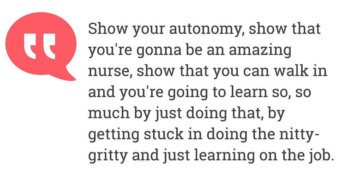 Show your autonomy, show that you're gonna be an amazing nurse, show that you can walk in and you're going to learn so, so much by just doing that, by getting stuck in doing the nitty-gritty and just learning on the job.