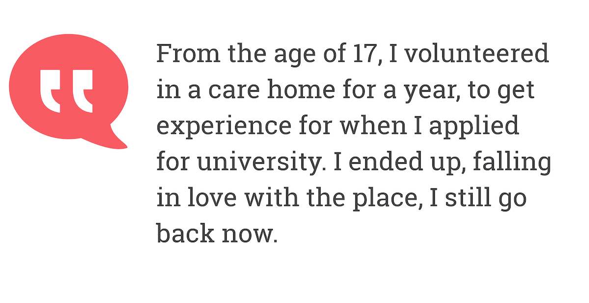 From the age of 17, I volunteered in a care home for a year, to get experience for when I applied for university.