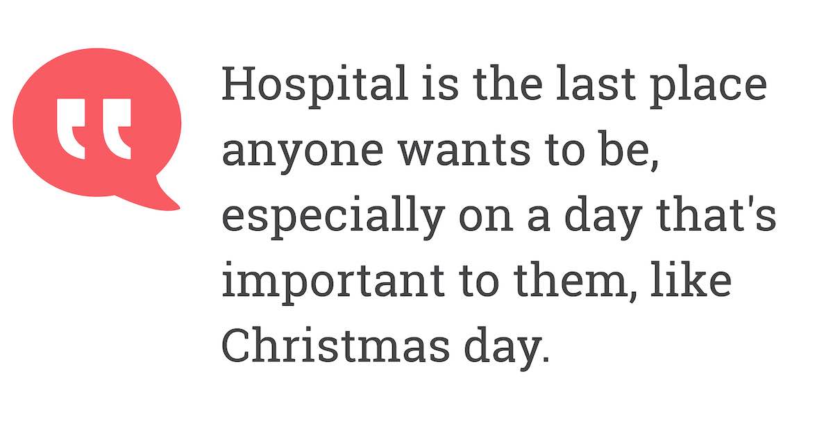 Hospital is the last place anyone wants to be, especially on a day that's important to them, like Christmas day.