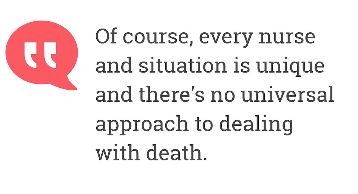 Of course, every nurse and situation is unique and there's no universal approach to dealing with death. Each of us has to take time to reflect and process the experience in our own way. For me, speaking with a counsellor has always helped me. You know, being able to speak my own story and sharing my feelings help me to acknowledge death.