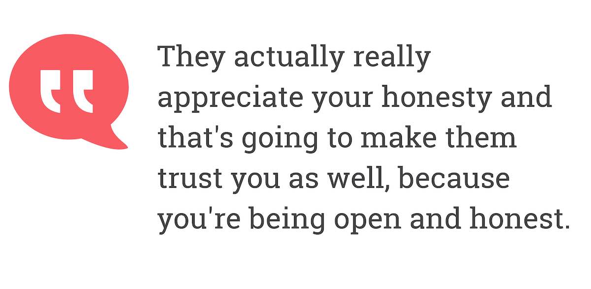 They actually really appreciate your honesty and that's going to make them trust you as well, because you're being open and honest.