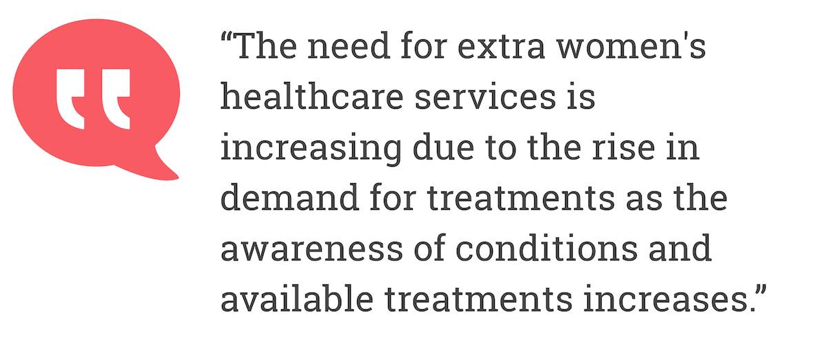 The need for extra women's healthcare services is increasing due to the rise in demand for treatments as the awareness of conditions and available treatments increases.