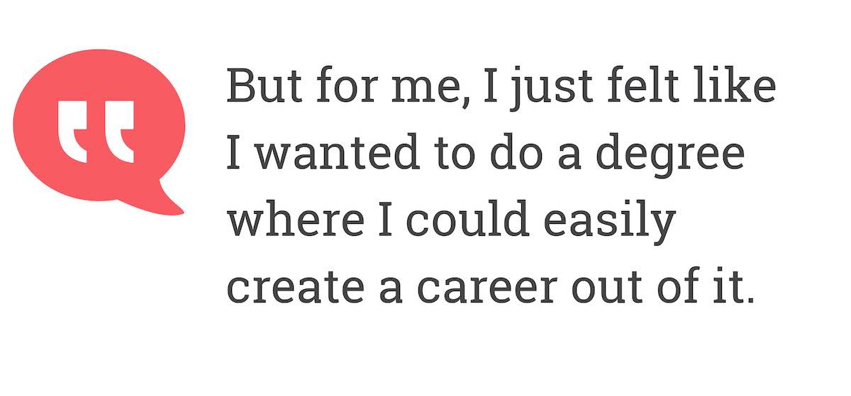 But for me, I just felt like I wanted to do a degree where I could easily create a career out of it.
