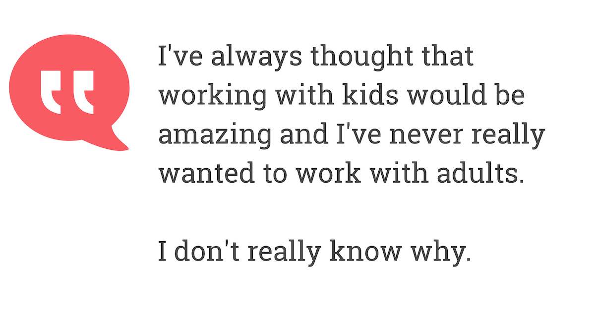I've always thought that working with kids would be amazing and I've never really wanted to work with adults.