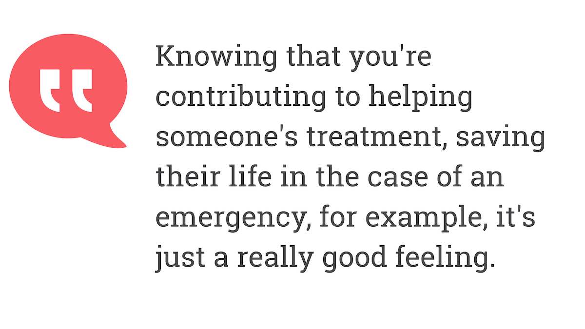 Knowing that you're contributing to helping someone's treatment, saving their life in the case of an emergency, for example, it's just a really good feeling.